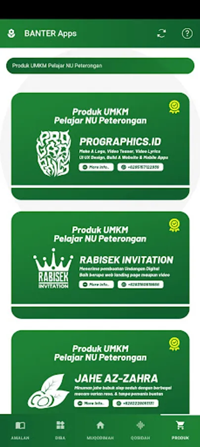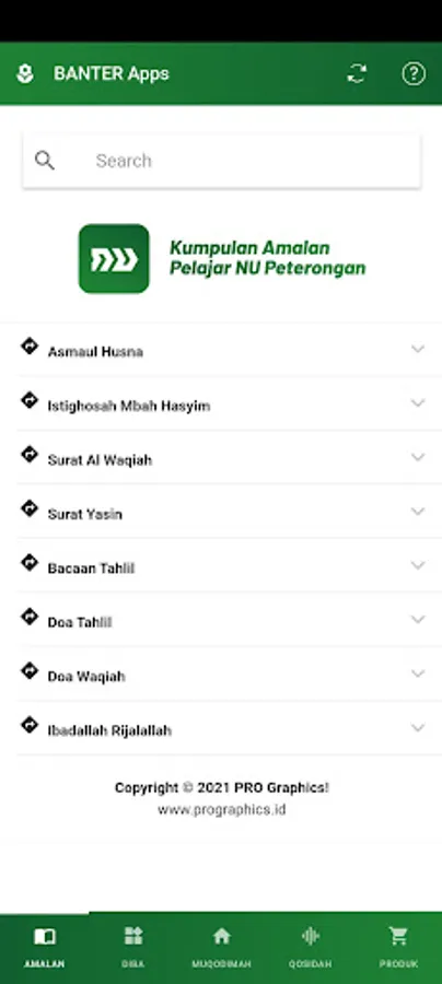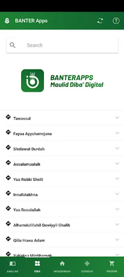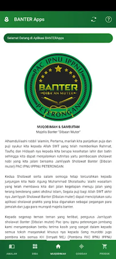 Is a mobile-based application that provides tahlil maulid text under the practice of nu peterongan students and also a collection of qosidah qosidah from the old to the newest, which are packaged according to the needs of the congregation of the sholawat assembly congregation, where there are several menus commonly used by the munsyid sholawat assembly banter, including tahlil maulid under several practices of NU Peterongan students and also a collection of qosidah qosidah from the old to the newest.