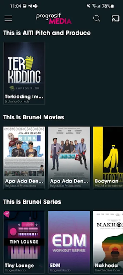 Progresif Media is the Home of Bruneian content. What started out as Brunei's first app-based radio station in 2017 has since evolved into a mobile and web streaming platform bringing you the most exciting Local content and tvN Movies straight to your devices. Keeping true to our roots, Live, On Demand and Podcast content remain a key feature on the platform.