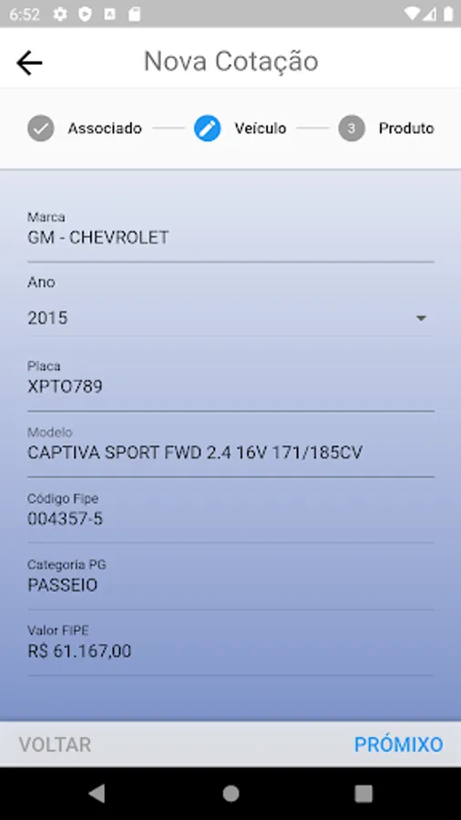 Application used by Volunteers, to attract members, making quotations for determining the monthly fee for Vehicle Protection and its options, offered by PROGRESSIVA Association of Protection and Vehicle Assistance.