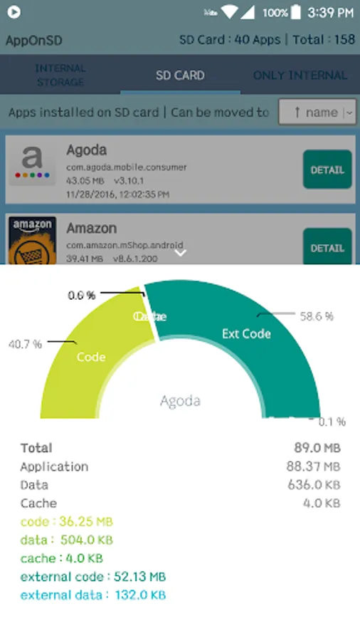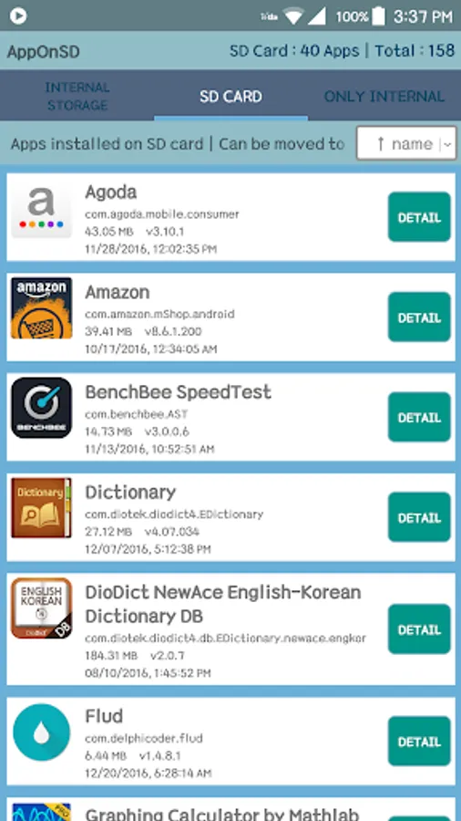 - List 2: Apps installed on SD card / Can be moved to internal storage