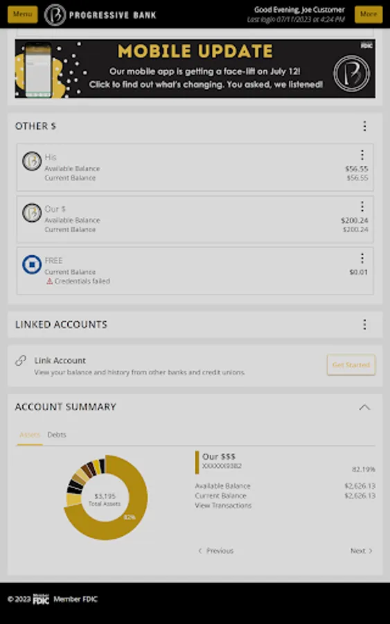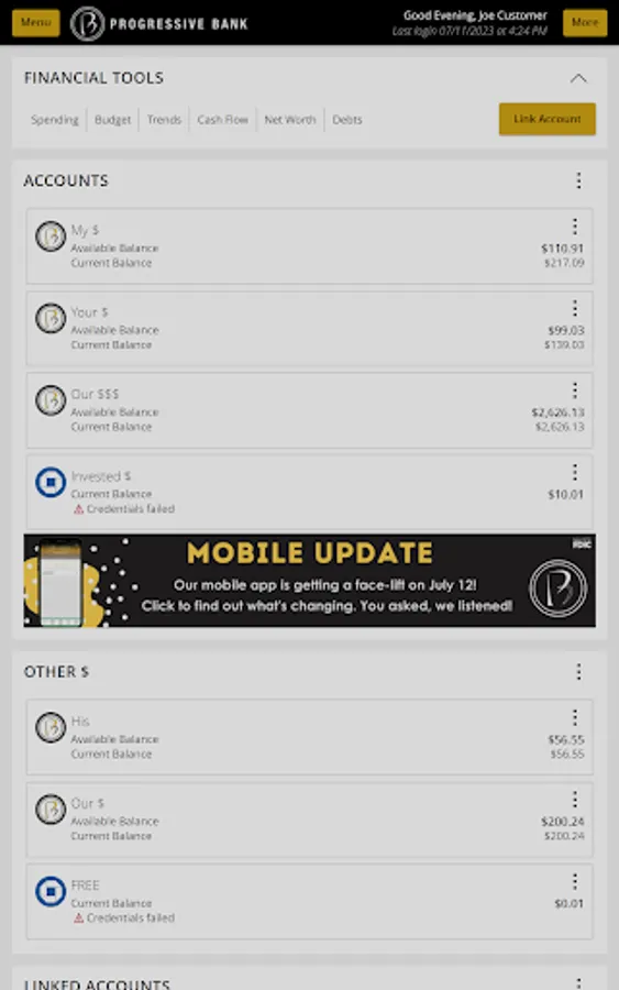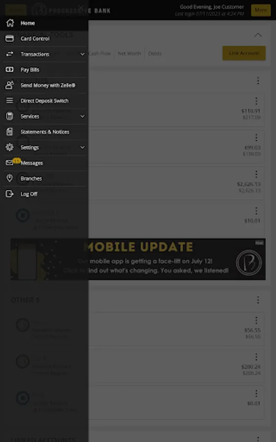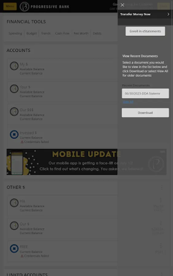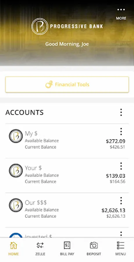 VIEW YOUR ACCOUNT BALANCES – Instantly access your current balances on any Progressive Bank personal account