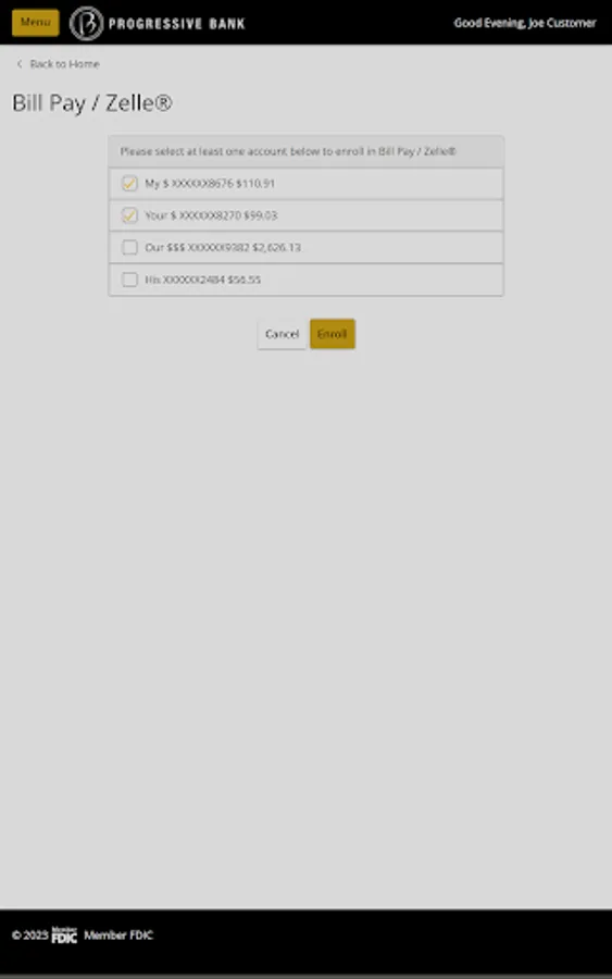 **You must be enrolled in Progressive Bank’s Online Bill Pay to utilize the Mobile Banking Pay Bills function.