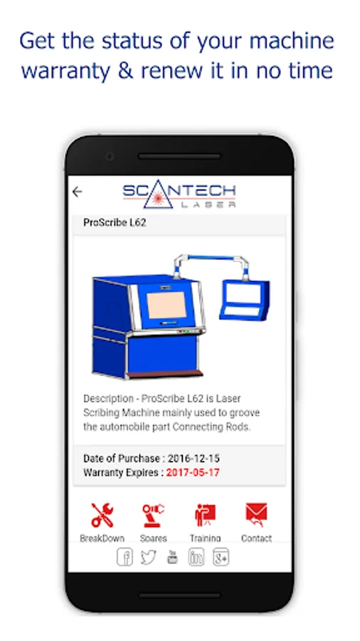 This Mobile Application is a treat for our Existing Clients who have our Laser Machines in their Company. This App will help them for the following.