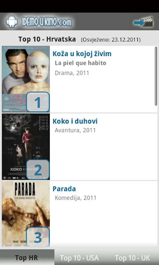 - top-liste filmova u kinima (Hrvatska, SAD, Engleska)