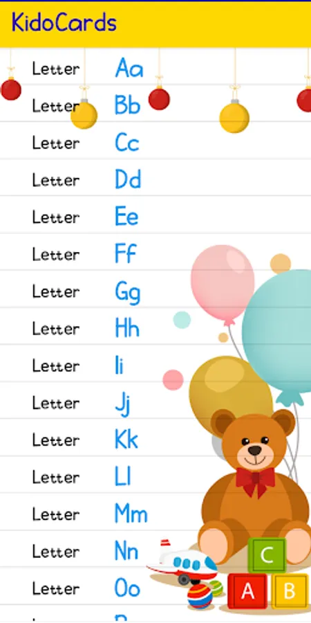KidoCards is an educational app which teaches kids letters, numbers, shapes, and colors