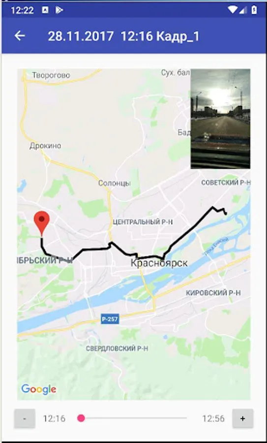 The program is designed to control the operation of self-propelled cars and mechanisms by serial photography and GPS location. The program does not require the presence of an Internet or GSM connection. Burst photography can be done at set intervals. Each photo is accompanied by GPS coordinates and the value of world time received from the satellite. The recorded information is reproduced with display on a map of the area where the photo was taken with the time display of each image. Maps can be quickly loaded via the Internet.