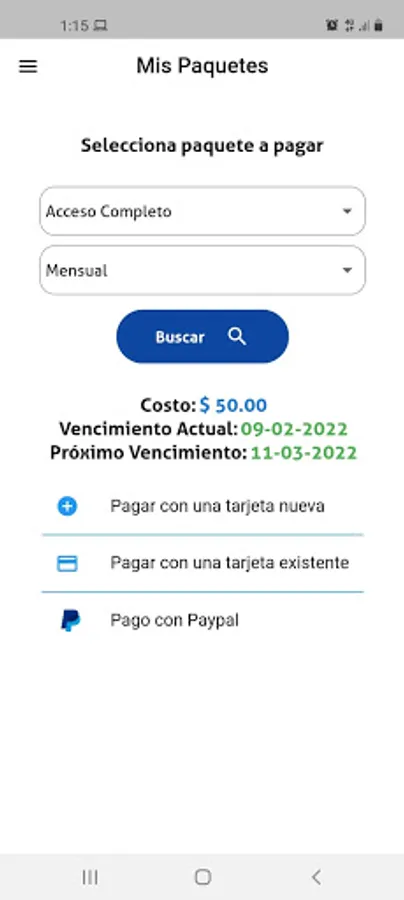 - Renew the contracted plan. Allows customers to pay for the packages or plans contracted through the different integrated payment platforms such as Stripe and PayPal