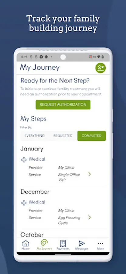 • Track your fertility journey: View your authorizations, track medication deliveries, and more.