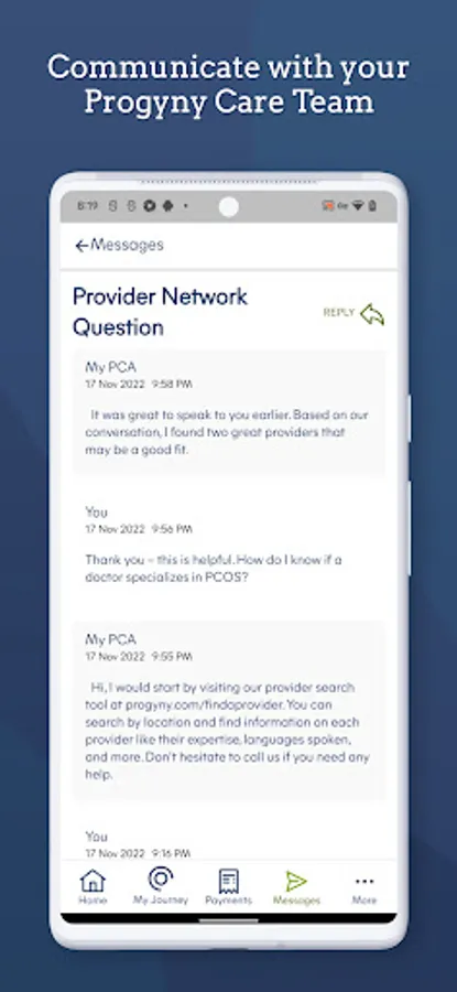 • Communicate with your Progyny Care Team: Send a secure message or click to call to speak with your Progyny Care Team.