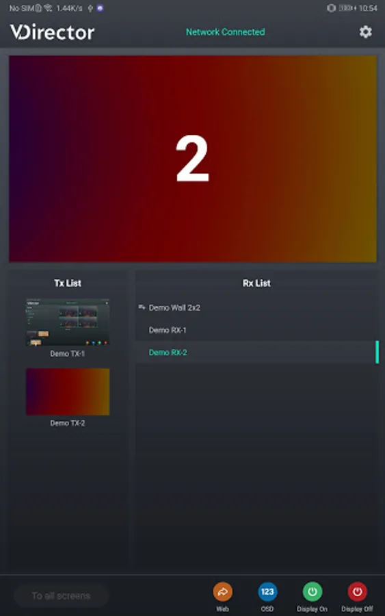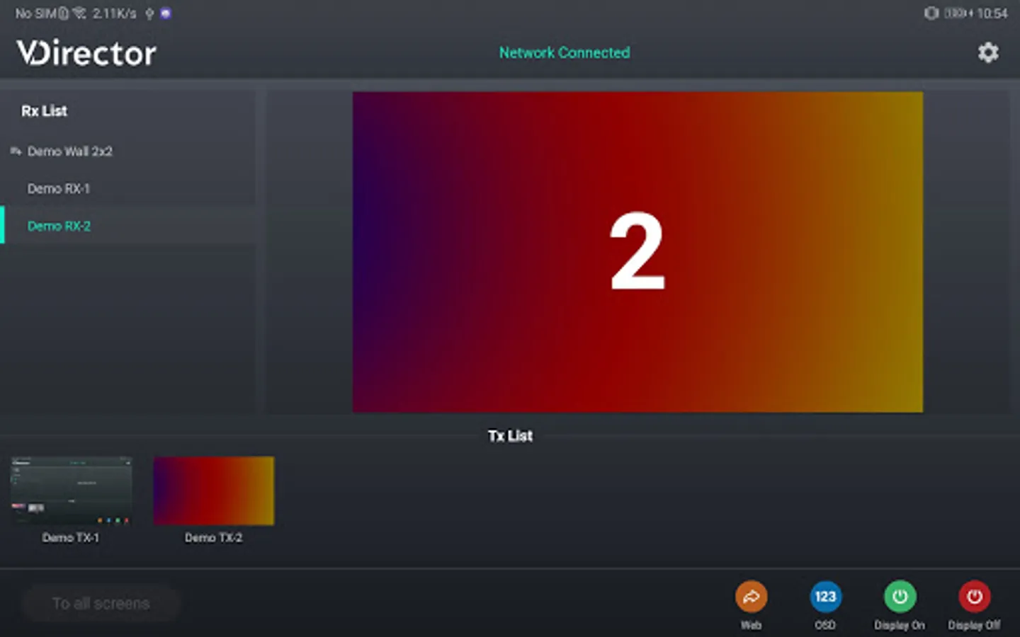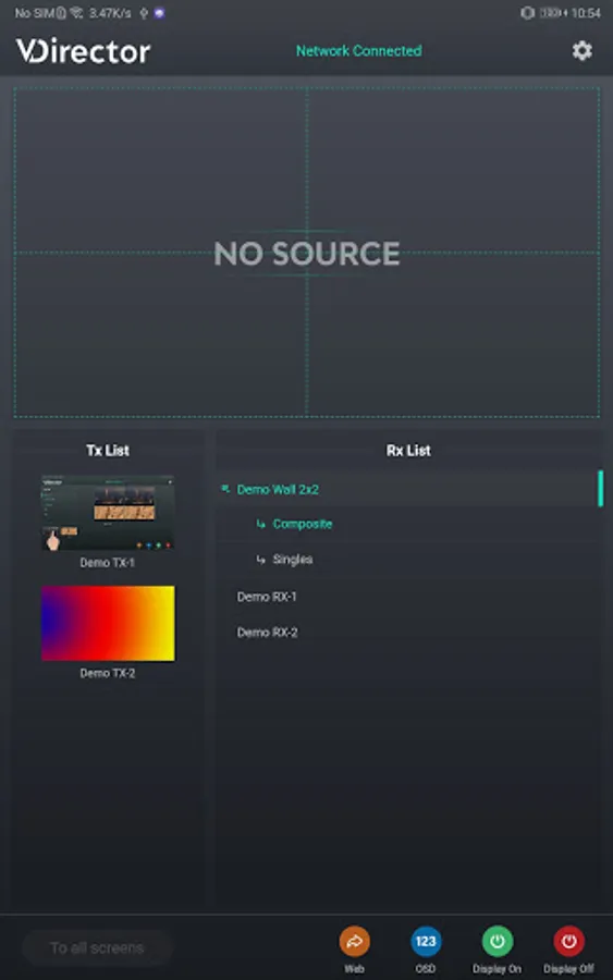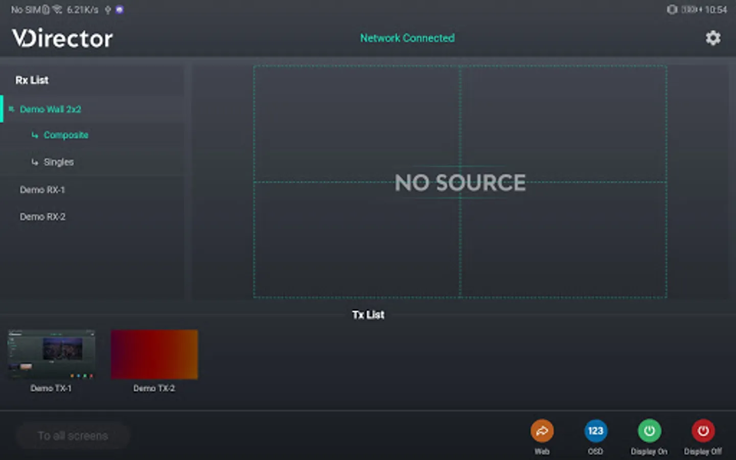 A control app of distributed video matrix system can automatically search the input and output nodes in the network, preview the input device screen in real-time, realize matrix source switching, one-button screen switch control, and so on through drag-and-drop operation, and also support video wall configuration and source selection operation.