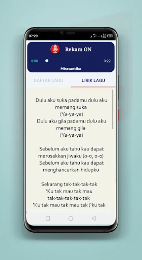 This application aims as a means of entertainment and to channel the hobby of singing/karaoke. For those who don't know the lyrics of the song, we have provided the lyric text.