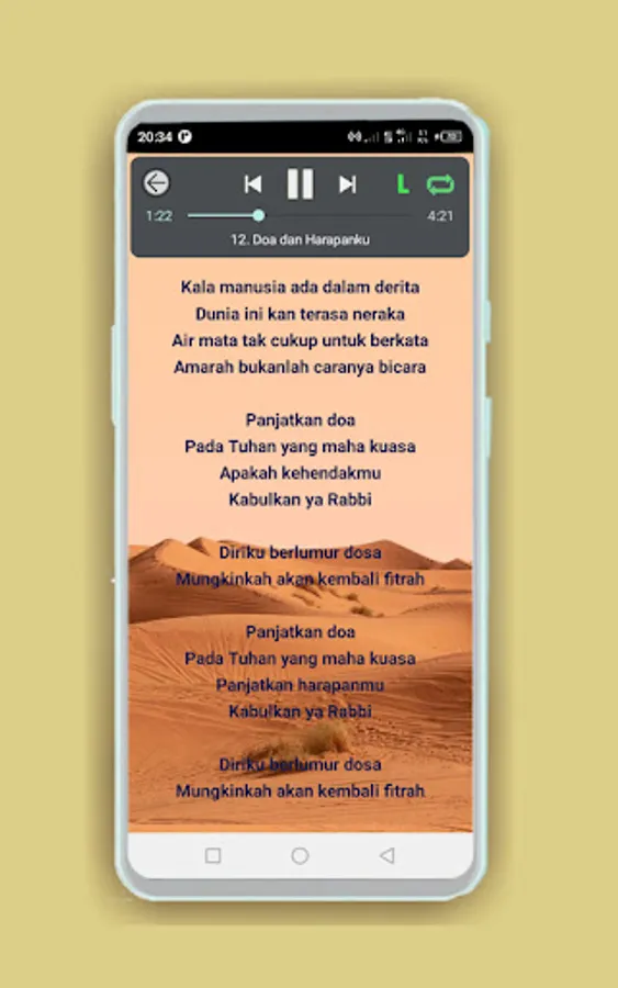 Apart from that, this application has available lyrics for each song that is played, so that it can be used to help and guide you so that you can participate in singing your favorite religious songs.
