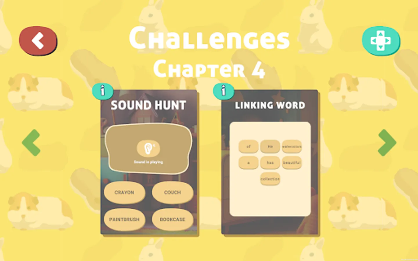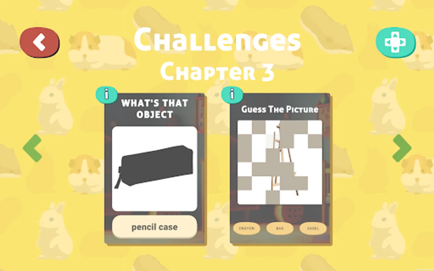 Where’s My Hamster offers many chapters, and each of them has a set of levels that you can play. When you find and discover an object in the game, you will learn the name of that object, its vocabulary, pronunciation, description, example sentence, and image. There are also multiple cool minigames for you, such as filling in the sentence, guessing the picture, matching a word to its correct image, and many more. All of these minigames serve to refresh what you learn in the main gameplay and stimulate your brain at the same time.