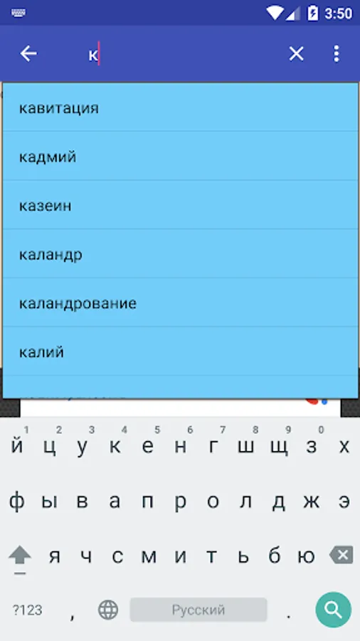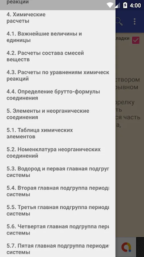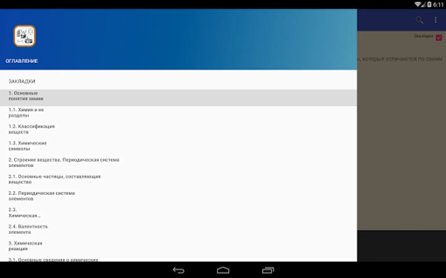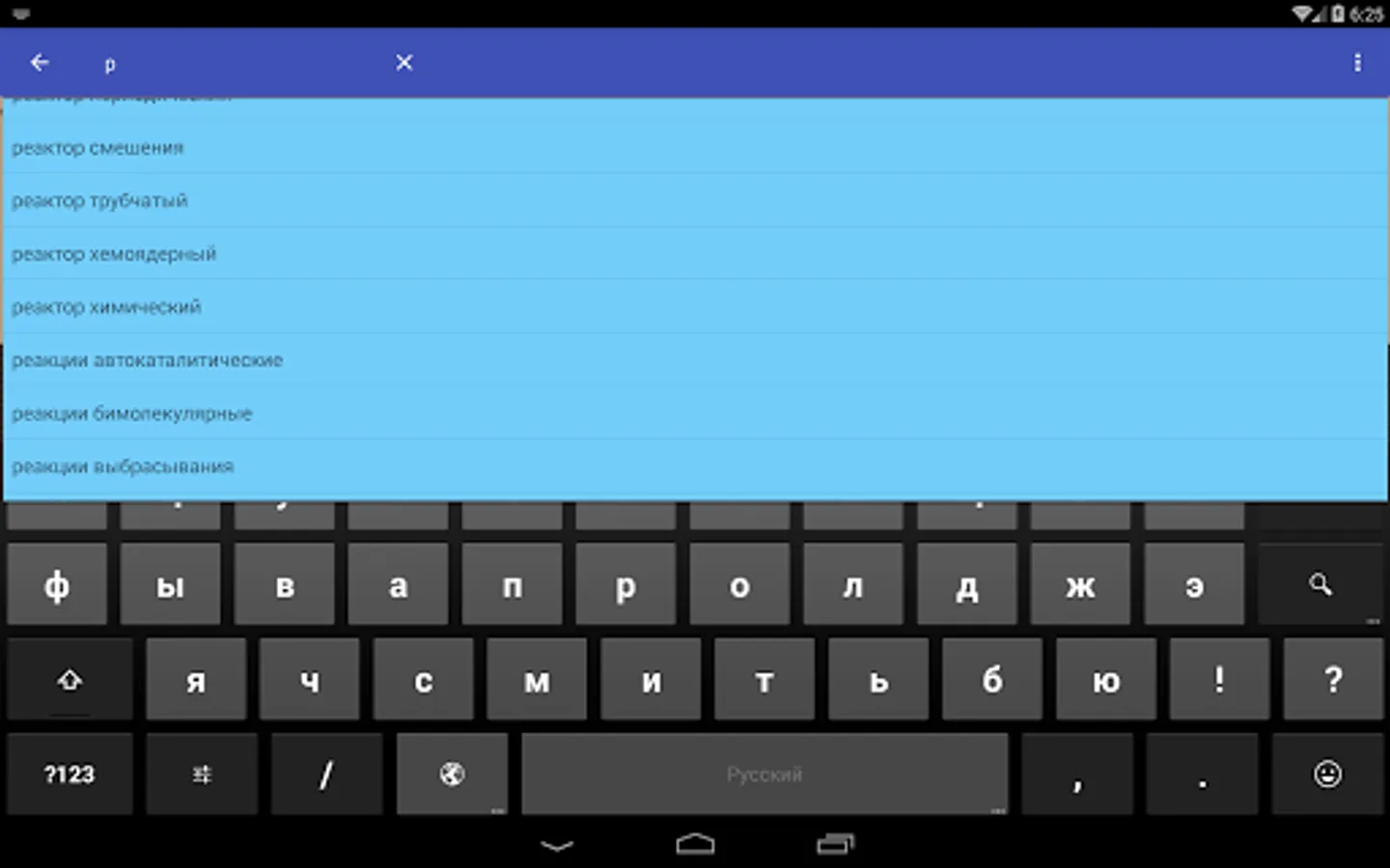 The application integrates a separate "search engine" not related to the main content. This "search engine" is a dictionary that is sensible, that is, it contains compressed interpretations of terms in chemistry and chemical technology. The lack of detailed explanations, descriptions and references made it possible to create a compact, wide in scope (about 5,500 terms) help system.