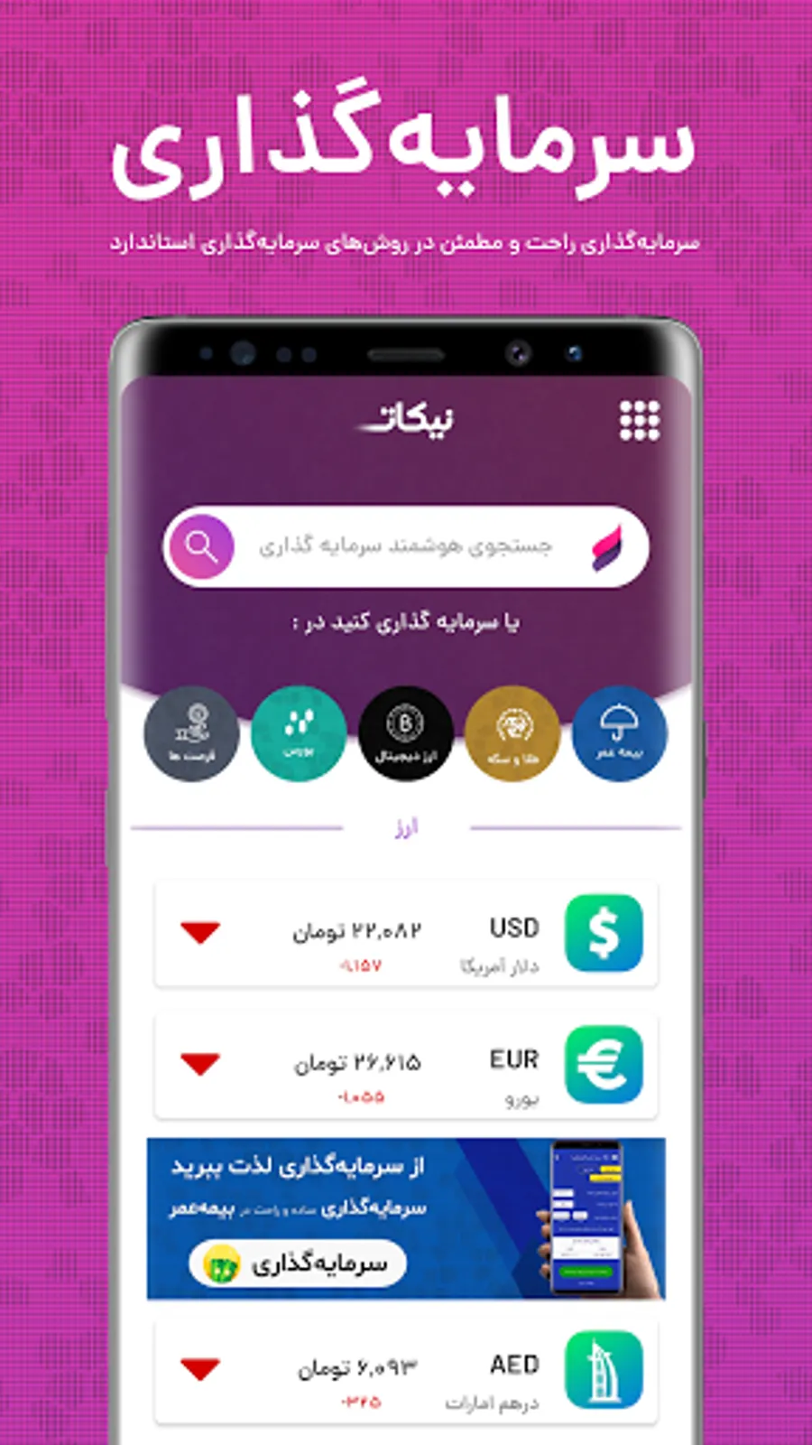 Nikat Investment Platform is a platform for safe, secure and convenient investment in potential and future digital currencies (such as Bitcoin, Tetra (digital dollars), Ripple and Theron), gold and coins, life insurance, and stock exchanges (coming soon). With free investment advice (access through the application menu) as well as an educational wallet to learn investing