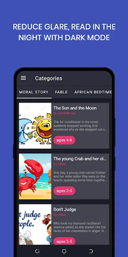 This application provides users of all ages with bedtime stories that can be read in app and also gives them the opportunity to write their own stories and upload it for other users to view and enjoy. This app also comes with a read out loud feature where the app reads the story to the users