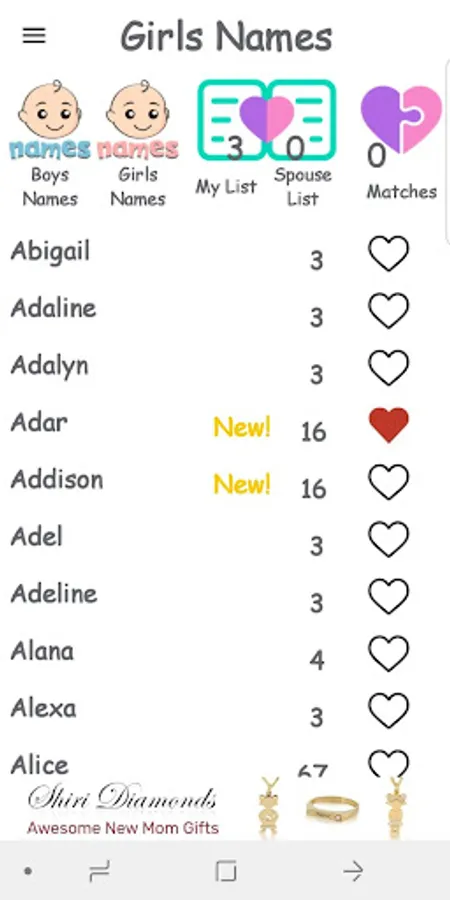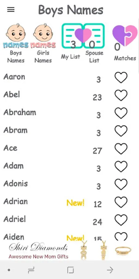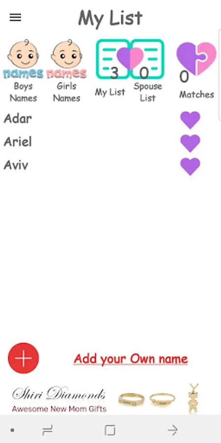This app doesn't only show a list of baby names but offers you also the possibility to add your own baby name, save your favorites and share with spouse.