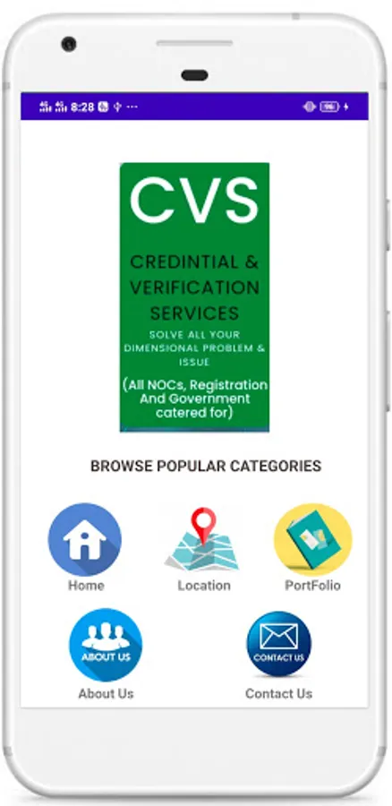 It is very simple, useful app regarding Credential & Verification services. In this app, user can easily identify different types of services. It offers a set of unique services, which were never offered in the format designed by CVS. Credential verification services may not sound new but as they are offered by CVS, it gives a new look at what can be done and how it is carried out. Every corporate body or even individuals require services at all times and often the integrity and the soundness of the service provider are not known. CVS provides a very trustworthy and apt solution to the issue which enhances the business workmanship of your organization in all directions. Also in this app, there are different types of buttons/functions available(01-Front page, shows welcome screen to user to motivate him to use this app for taking Services(Note: There is no any payment involve in this app mean no in app purchase method in this app, this app is just for business promotion purposes only 02-Slide movement in form of line 03-Contact numbers 04-Complete Address 05-Location for address. In this App, also beautiful pictures have been used in which shows different type of services at the same place. There is beautiful splash screen for providing user-friendly environment. In this app, there is special work which clearly shows that this app is related with Service work(Multi Service).The functionality of APP is so simple that every one can understand use of this app & if he wants to contact with authorize person then he can contact with them through their mobile numbers as well.(Note: There is no any payment involve in this app mean no in app purchase method in this app).