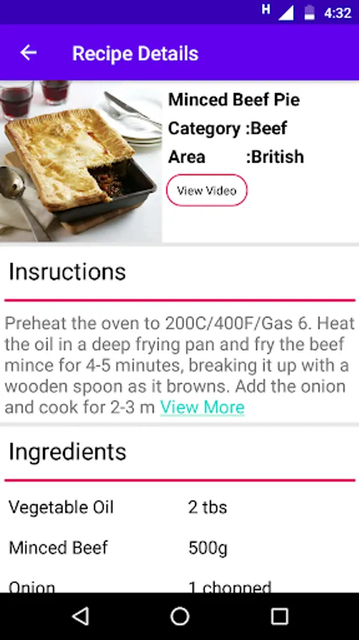 And list of ingredients is also provided to check the recipes under particular ingredient.