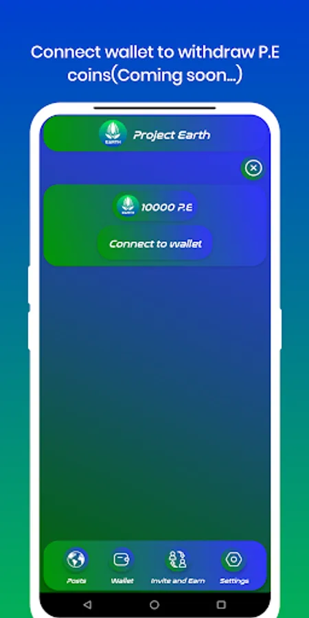 💰 Crypto with Purpose: P.E coins aren't just any cryptocurrency – they're a symbol of your commitment to Earth's well-being. As you accumulate P.E coins, you're not only building a digital asset but also contributing to projects dedicated to environmental conservation and sustainability. Watch your P.E coin balance grow while knowing that you're supporting initiatives that matter.