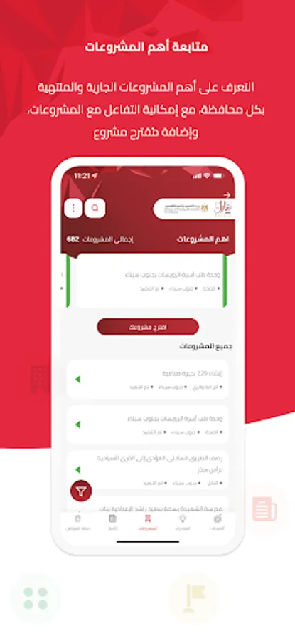يستعرض التطبيق متابعة تنفيذ أهداف التنمية المستدامة، والبرامج والمؤشرات المرتبطة بكل هدف، والتعرف على أهم المبادرات، وكذا المشروعات المرتبطة بكل مبادرة، مع إمكانية إضافة مقترح مبادرة. ويسمح كذلك بتصفح المشروعات الجارية والمنتهية وفقًا للمحافظة أو القطاع، وتقييم ما تم إنجازه من هذه المشروعات، من خلال متابعة معدلات الإنجاز بالمقارنة بين المستهدف تنفيذه وما تم تنفيذه بالفعل، مع إمكانية إضافة مقترح أية مشروعات يراها المواطن ذات أولوية مع تحديد موقعها الجغرافي بشكلٍ دقيق.
