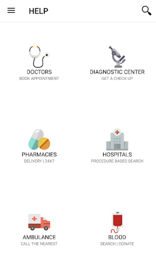 HELP App lets you search for the appropriate medical service providers (e.g. Doctors, Chemists, Laboratories, Hospitals, Ambulances, Blood Banks) in your area.