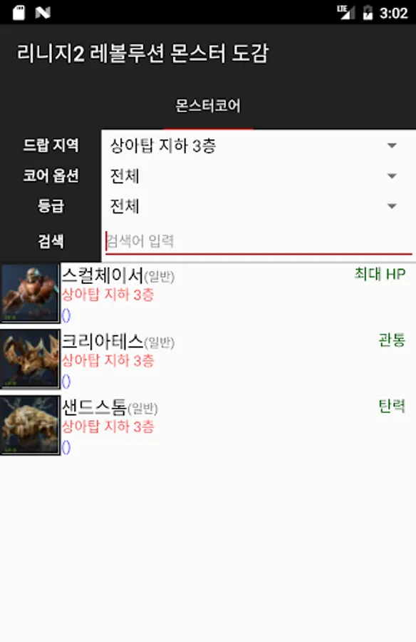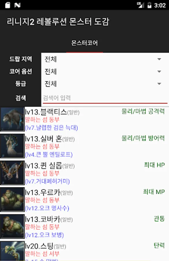 몬스터 코어 도감 (리니지2 레볼루션) Screenshots