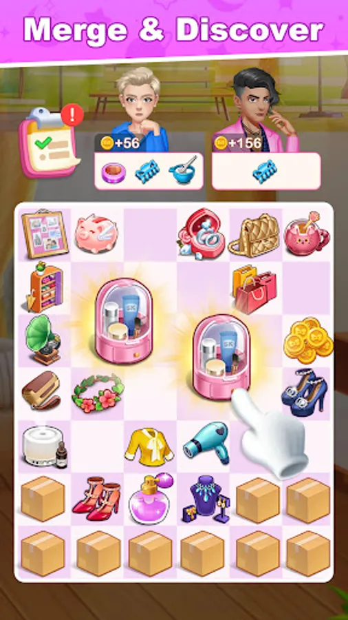 Discover hundreds of unique elements on the board. Fulfill the orders by collecting and merging items using multiple combinations. Earn surprising rewards at the end of every order!
