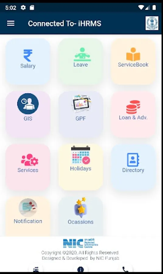 Other general facilities available under iHRMS Punjab mobile app are Phone & Email directory of different departments, employee/colleagues having birthdays on a particular day in the office, List Official Holidays (Restricted/Gazetted) besides viewing of government notifications of the department concerned to which employee belongs besides notifications uploaded by different departments.