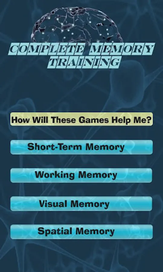 Complete Memory Training is a FREE game designed to train four types of your memory: