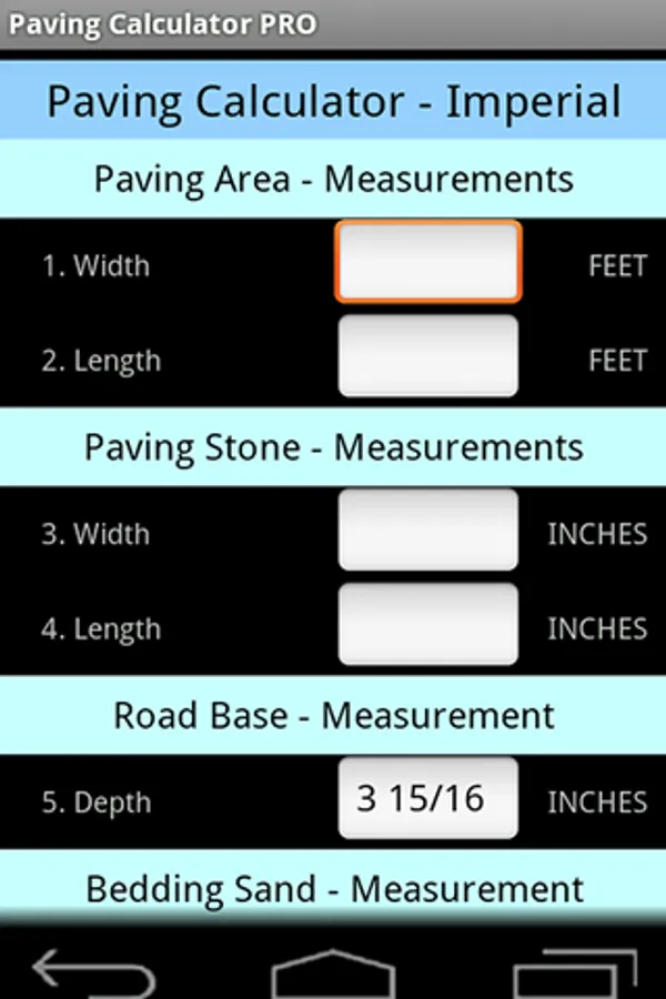 Calculate the amount of paving stones, road-base, sand, cement and other costs for landscaping.