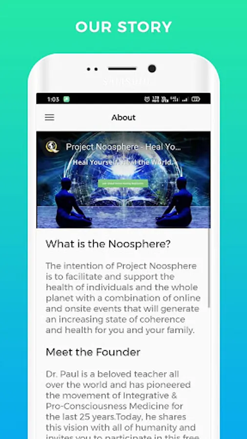 This mobile application allows for easy access to Project Noosphere, allowing you to connect with like-minded meditators around the world through daily Global Meditation.