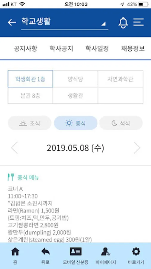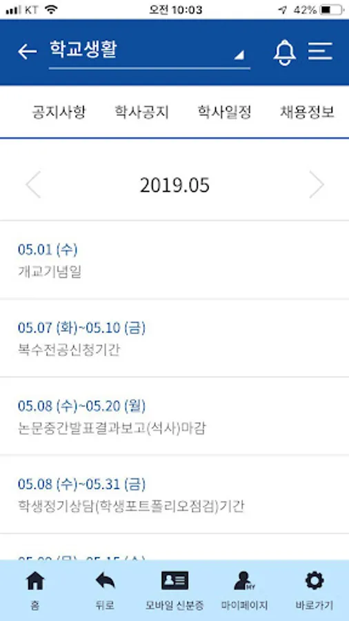2. School Life: You can see major campus schedules such as school announcements, academic calendar, job information, and more.