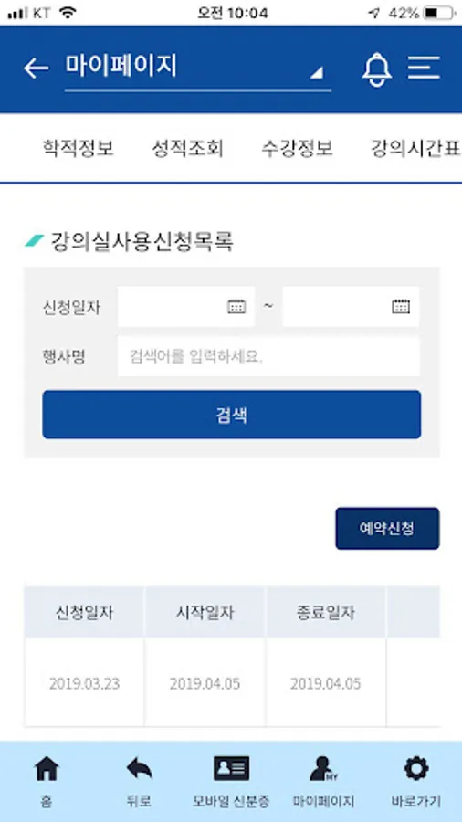 6. Convenient Features: Provides convenient functions such as real-time seating information for each library in the central library, application for inquiry into empty classrooms, and retrieval of faculty members' contacts.