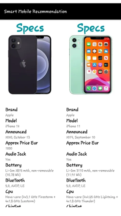 We developed a mobile recommendation application. In this application, we are recommending users different mobile phones based on their price range and specifications (Processor, RAM, Storage, Camera, OS, Network, Screen, Sensors, Battery, Sims, Brand, and Weight). Smart Mobile Recommendation app help us about Mobile Prices and Specs is an application where you will find the specifications of all the top selected smart phones of top brands.