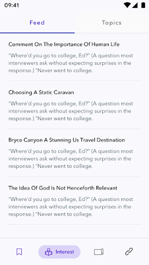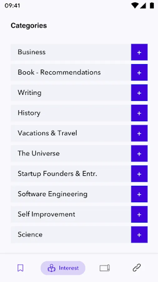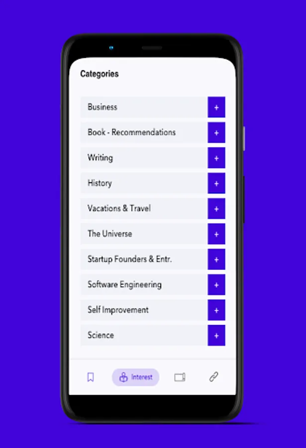information from the original text and categorised summaries of blogs/article for curated interests .