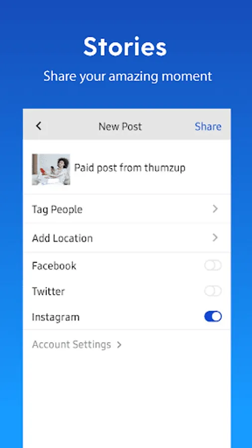 The Thumzup app connects brands, products and services with the people who use and love these brands, products and services.