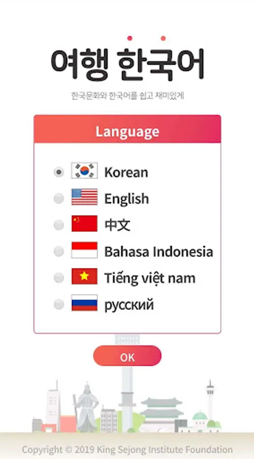- Learn about the Korean language on the website ‘King Sejong Institute’, ‘King Sejong Institute Foundation’, and ‘Nuri-Sejong Institute’(www.sejonghakdang.org).