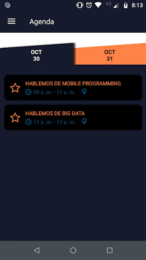 - See the agenda of the event, where you can organize your talks and round tables in your favorites section.