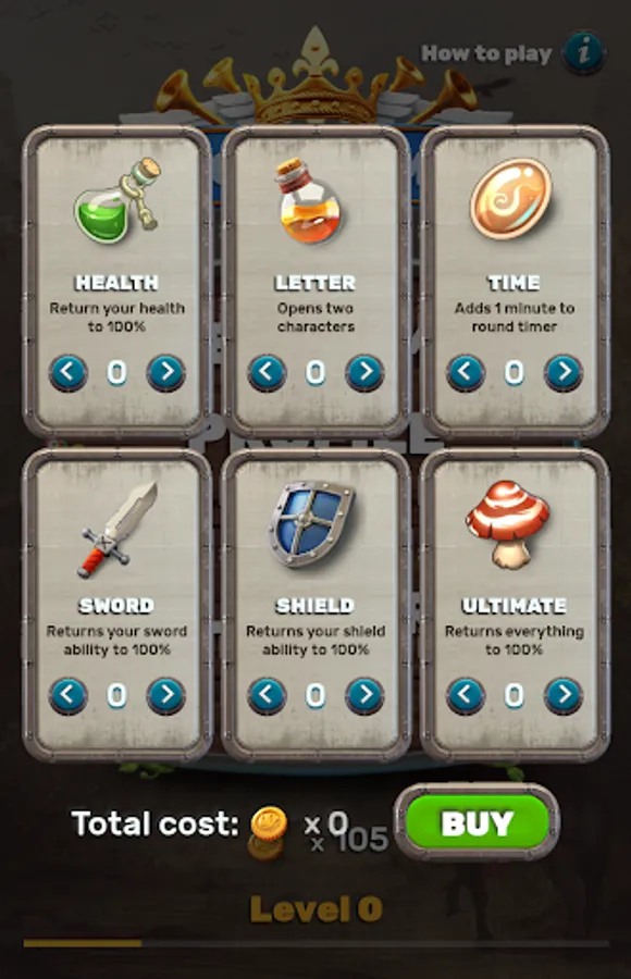 You are a noble knight that has to reveal as many words as possible in order to conquer medieval game ladder. Be the strongest and sharpest knight, test your knowledge, and with the help of sword in one hand, shield in the other and a bunch of potions in your bag, reveal as many words as possible.