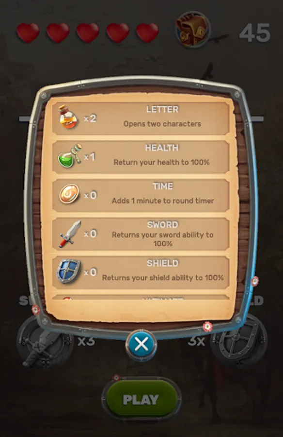 Hangman type of a game where you need to guess a hidden word before you run out of life. In this hangman game, you can use potions and weapons to help you.