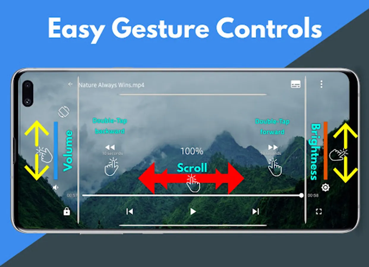 🌟 Gesture Controls : Supports gestures to control volume, brightness, seeking and control the playback