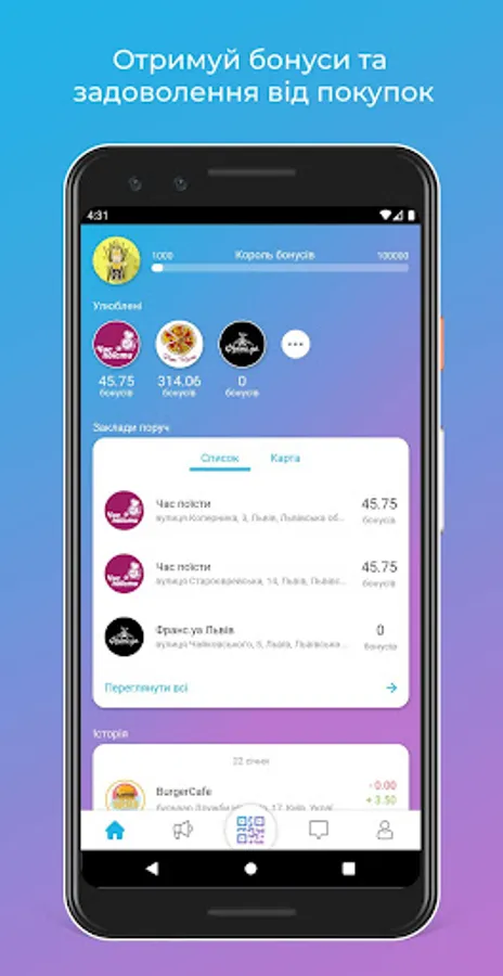 Make purchases using the Smart Bonus and get the following opportunities: accumulate and spend bonuses and discounts, control your purchases and bonus accrual.
