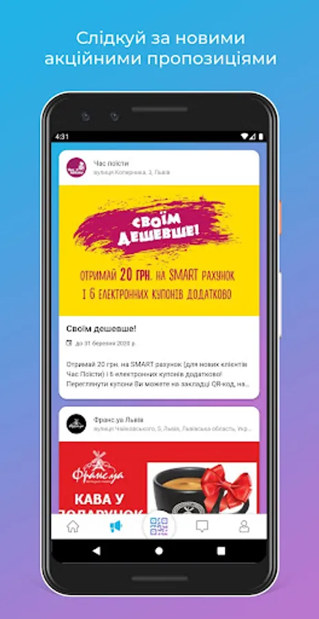 Show the cashier your code before calculating and get a discount or bonuses. Bonuses are automatically debited with the next purchase.
