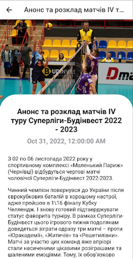 Welcome to the world of volleyball. Here you will find all the information about volleyball in Ukraine. Championship of Ukraine in volleyball among men's teams of the Super League - Budinvest and women's teams of the Super League - Dmart, League Cup.
