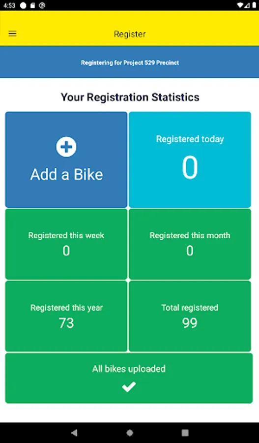 529 Garage Volunteer makes it easy for organizations to host bike registration events in their community! In just a few screens, event volunteers can capture all the important information about an owner's bicycle and take photos to help in case the bike is ever stolen.