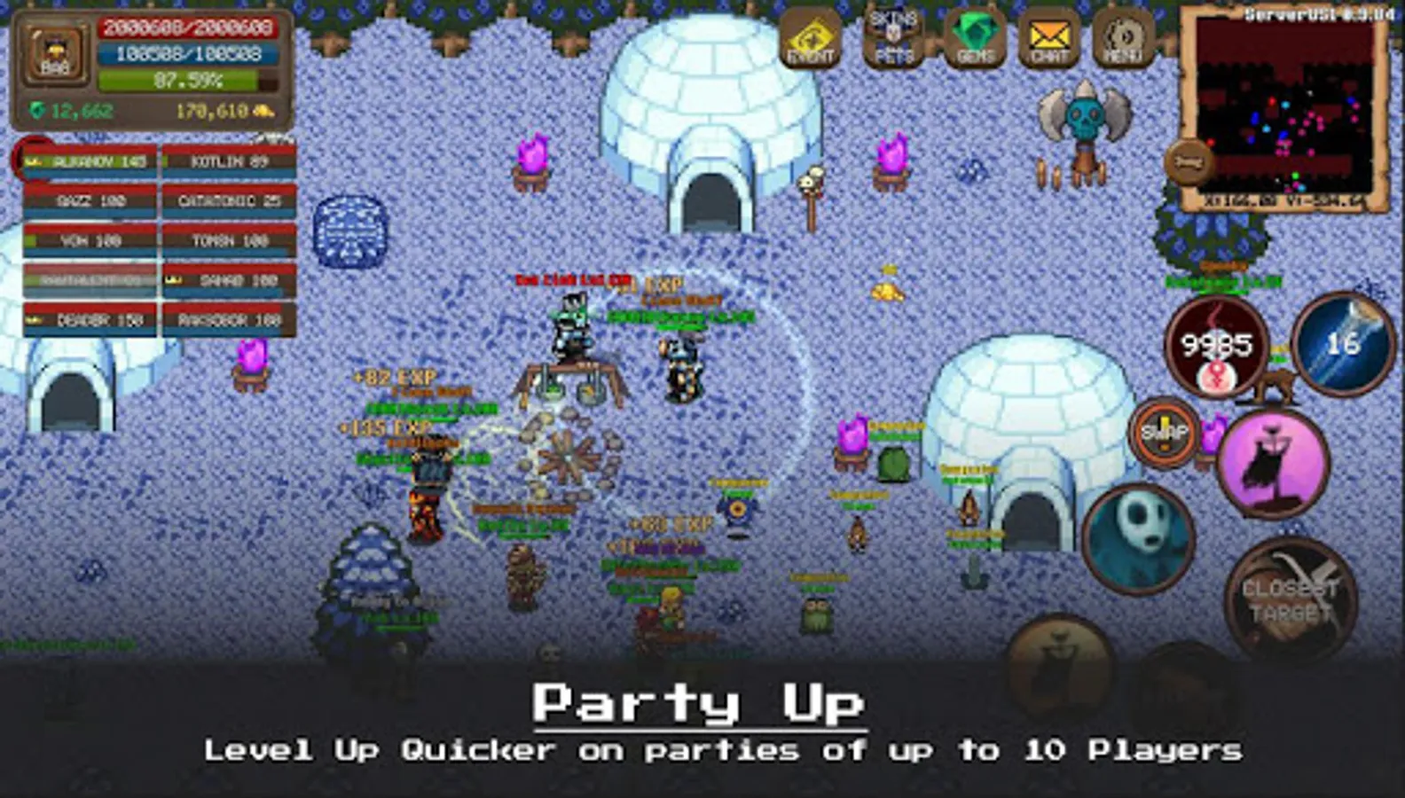 Get loyal pets to help you out! Each of them will help you in different ways such as collecting your loot, teleporting, auction house, and much more.