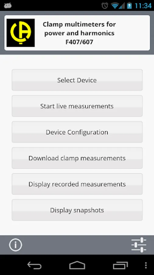 This Android application is designed to work with the F407 and F607 Chauvin-Arnoux power harmonics clamps and the AEMC Instruments models 407 & 607, this gives you the remote clamp's screen and keyboard.