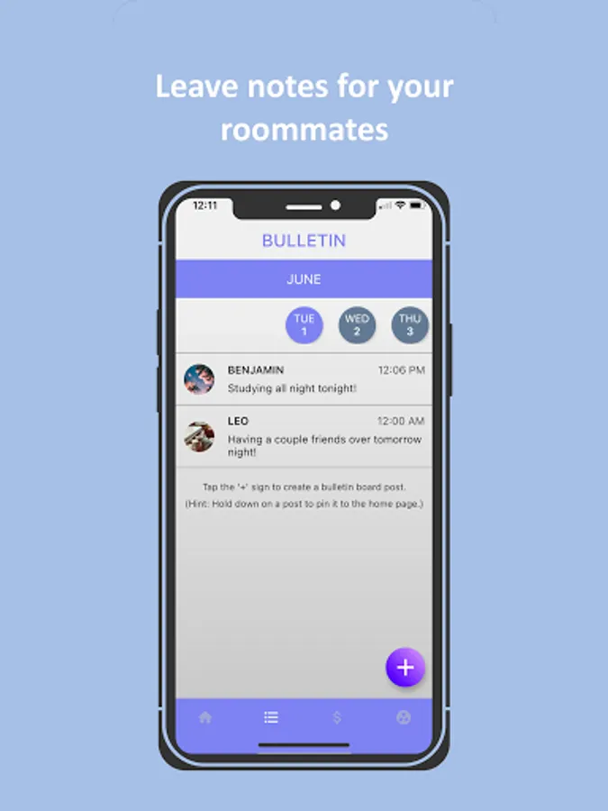 Roomiez is communication with roommates made easier. Divide and conquer your house/apartment tasks with the chore management system, keep track of purchases with your expenses page and leave important notes for each other on your bulletin board.