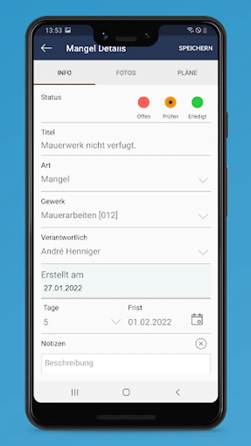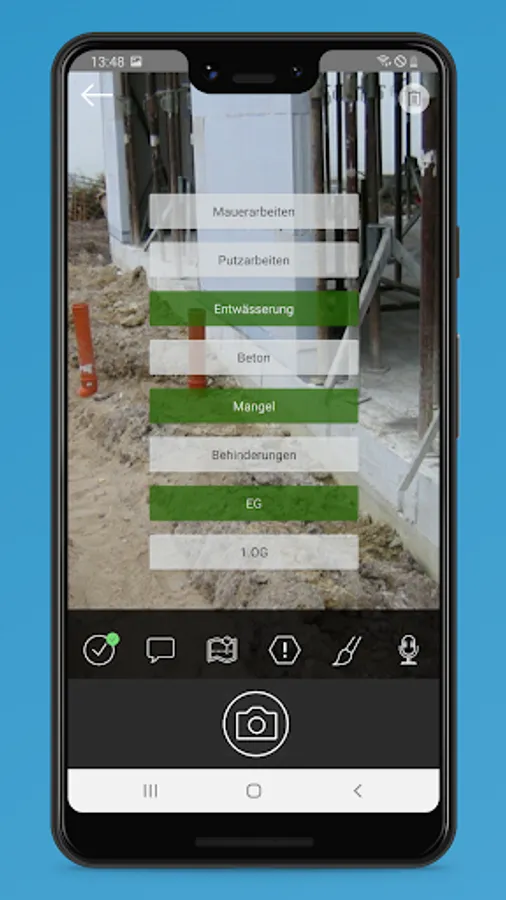 Fast on-site recording is the be-all and end-all of projectdocu. Thanks to voice recording and dictation, you can transform everything you see into information that can be further processed. You thus shorten the process chain from the recording to the log to a fraction.